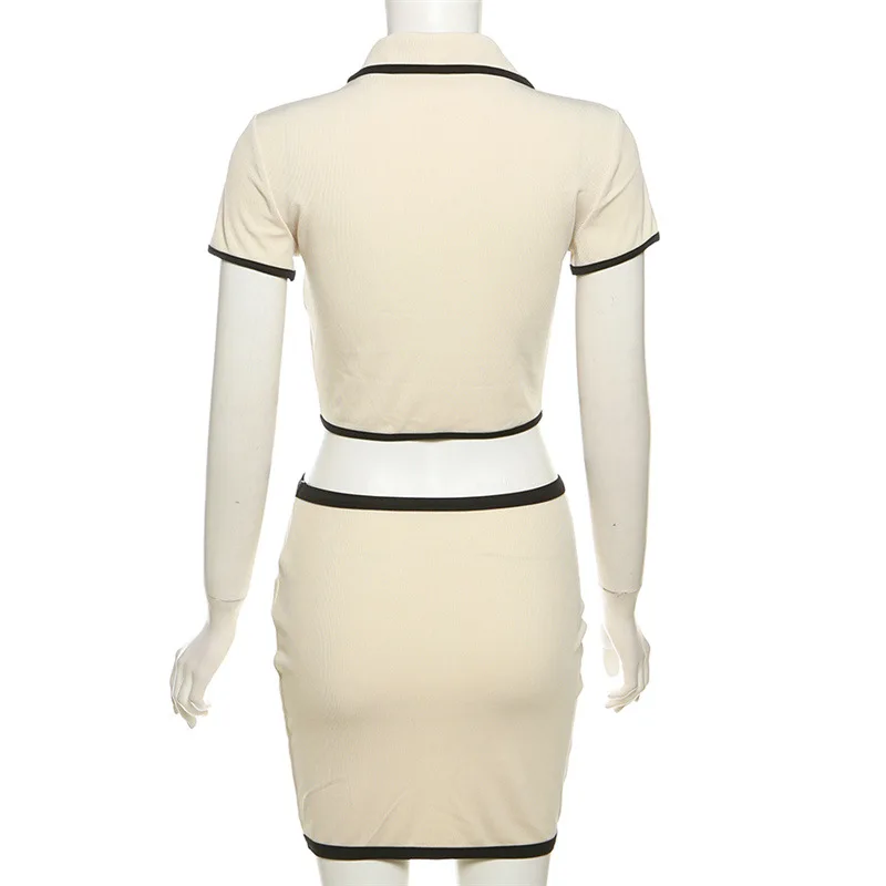 Women’s Ribbed Polo Two-Piece Set – Crop Top + Mini Skirt (Summer Streetwear)