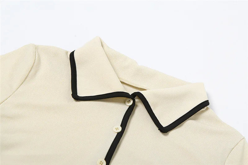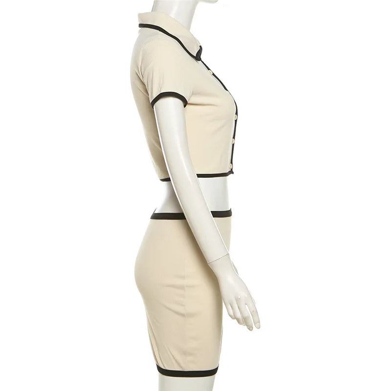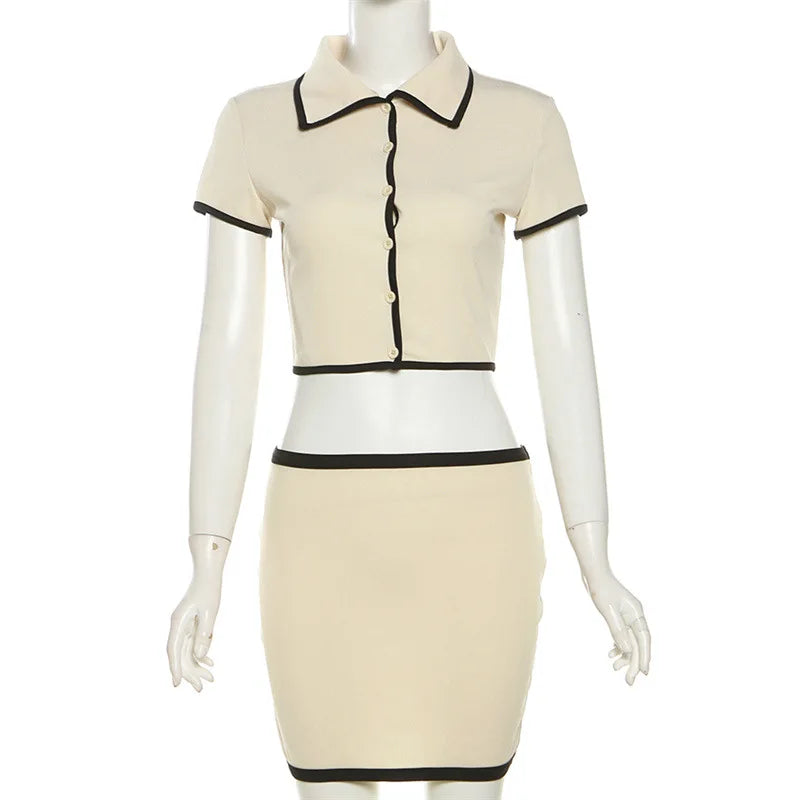 Women’s Ribbed Polo Two-Piece Set – Crop Top + Mini Skirt (Summer Streetwear)